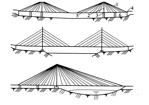 系,如圖2.2.11所示。這里以混凝土斜拉橋為例介紹其構(gòu)造特點。