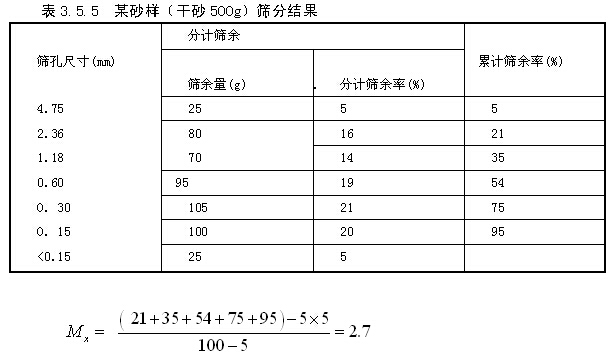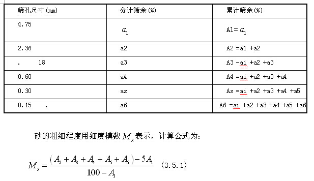 (各篩上的篩余量占砂樣總重的百分率)及累計篩余百分率A1,、A2、A3、A4 和A6(各號篩的分計篩余百分率加上大于該篩的分計篩余百分率之和),其關系見 表3.5.3。