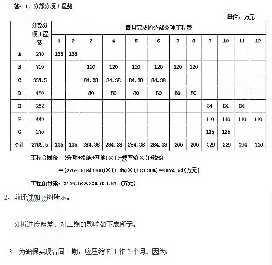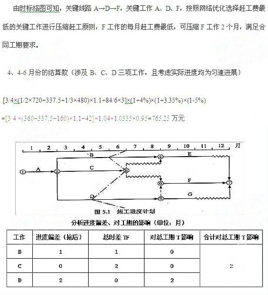 4、按實(shí)際進(jìn)度情況結(jié)算,第4~6月應(yīng)簽發(fā)工程款為多少萬(wàn)元(假設(shè)期間無(wú)其他項(xiàng)目費(fèi)發(fā)生,a工作按批準(zhǔn)進(jìn)度計(jì)劃完成)?