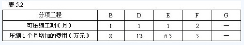 3、若承包方?jīng)Q定在第6個(gè)月后調(diào)整進(jìn)度計(jì)劃以確保實(shí)現(xiàn)合同工期,應(yīng)如何調(diào)整(有關(guān)分項(xiàng)工程可壓縮的工期和相應(yīng)增加的費(fèi)用見(jiàn)表5.2)?說(shuō)明理由。