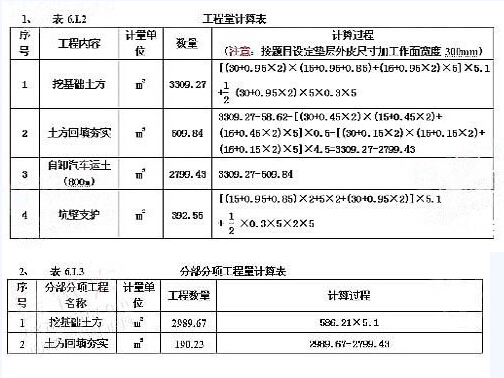 1、預算定額計算規則為:挖基礎土方工程量按基礎墊層外皮尺寸加工作面寬度的水平投影面積乘以挖土深度,另加放坡工程量,以立方米計算;坑壁支護按支護外側直接投影面積以平方米計算,挖、運、填土方計算均按天然密實土計算。計算挖掘機挖土、土方回填夯實、自卸汽車運土(800m),坑壁支護的工程量,把計算過程及結果填入答題紙表6.1.1“工程量計算表”中。