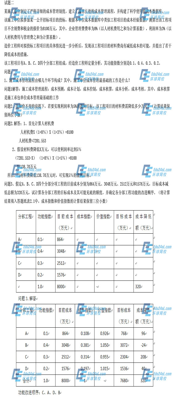 2014造價師《造價案例分析》考試試題及答案第二題,更多真題及答案敬請關注環球網校!