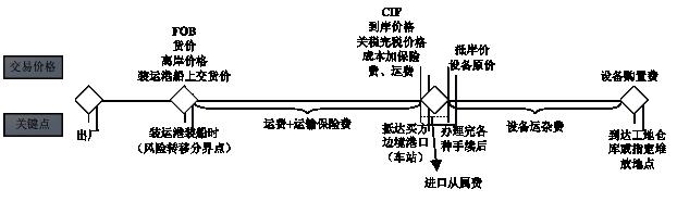 進口設備到岸價(CIF)=離岸價格(FOB)+國際運費+運輸保險費