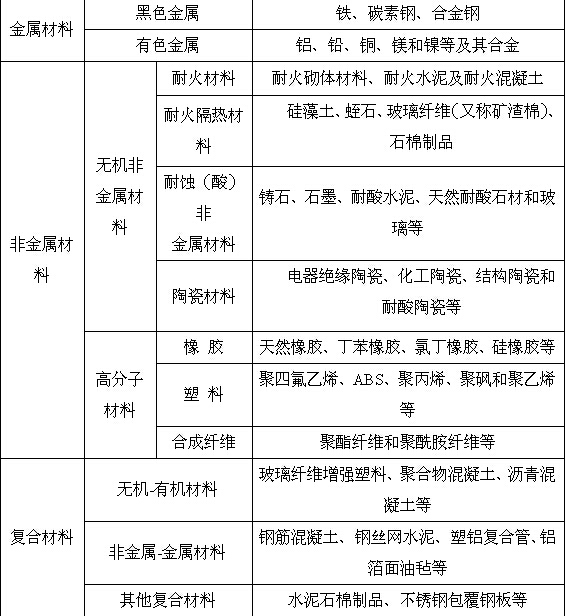 表1.1.1 常用的工程材料分類