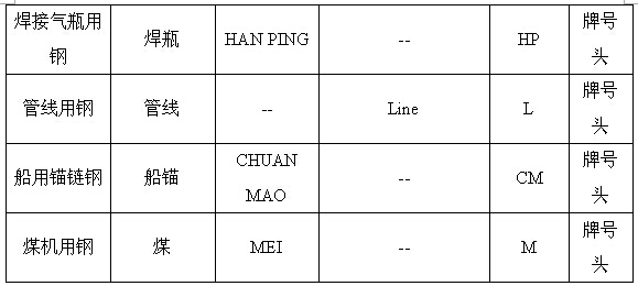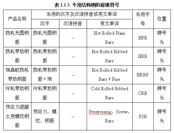 表1.1.3 專用結構鋼的前綴符號
