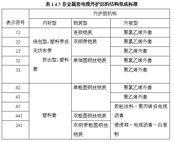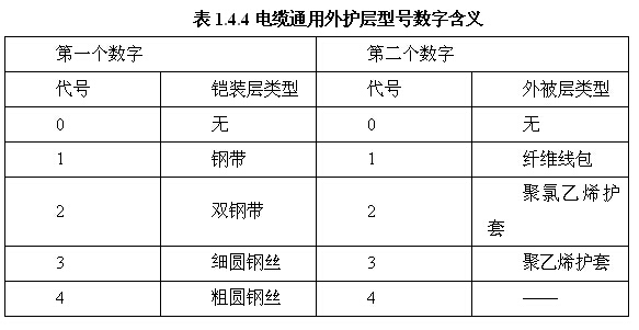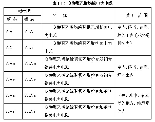 (1)銅芯導(dǎo)體電力電纜其型號見表1.4.6所示。