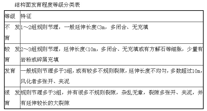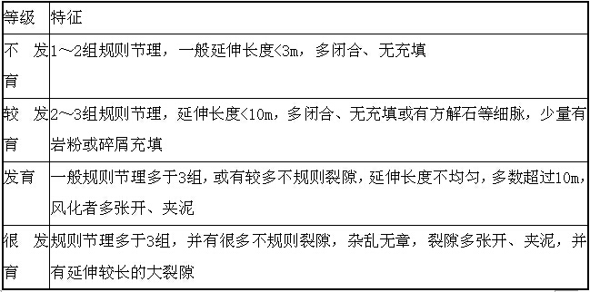 分析:節理組數的多少決定了巖石的塊體大小及巖體的結構類型,根據節理組數劃分的結構面發育程度分級如表。