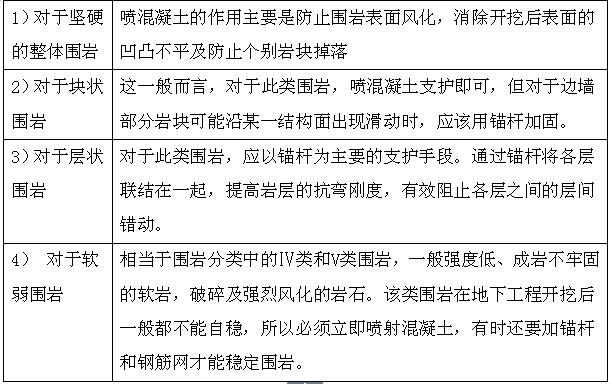 A.對于堅硬的整體圍巖噴混凝土支護即可