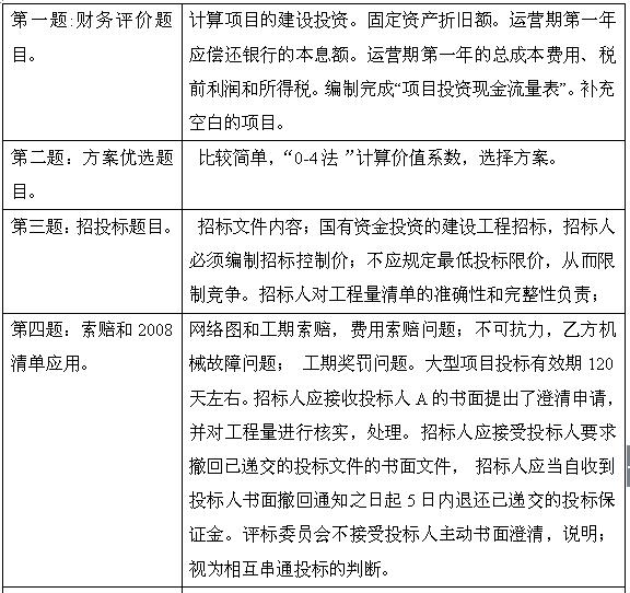 主要是價值工程理論和資金等值計算。這個題目也和教材的一道題目(也是原來的一道考題)很類似。這個題目沒有什么爭議,就是需要推算各個功能重要程度。 |
