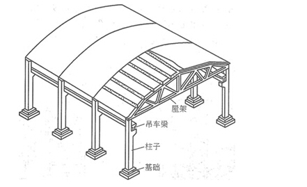 一般常采用預(yù)制裝配式鋼筋混凝土剛架、預(yù)應(yīng)力混凝土剛架或鋼剛架。鋼筋混凝土剛架常用于跨度不大于18m,一般檐高不超過10m,無吊車或吊重10t以下的車間。