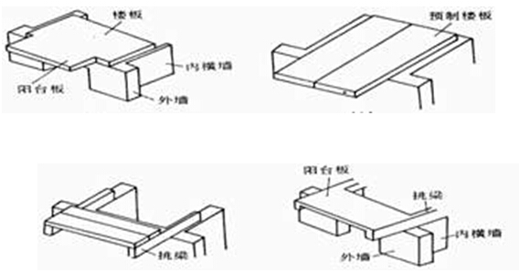 1)墻承式。 多用于凹陽(yáng)臺(tái)。