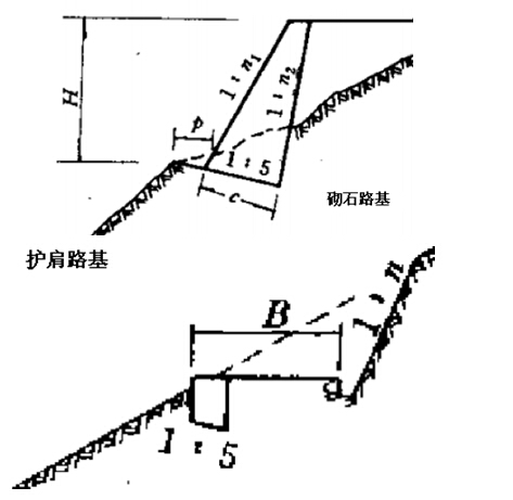 2007年考題6.堅硬巖石陡坡上半挖半填且填方量較小的路基,可修筑成( )。