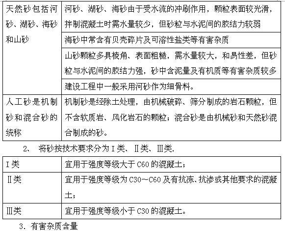 砂按細度模數分為粗、中、細三種規格:3.7~3.1為粗砂,3.O~2.3為中砂,2.2~1.6為細砂。