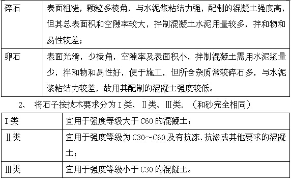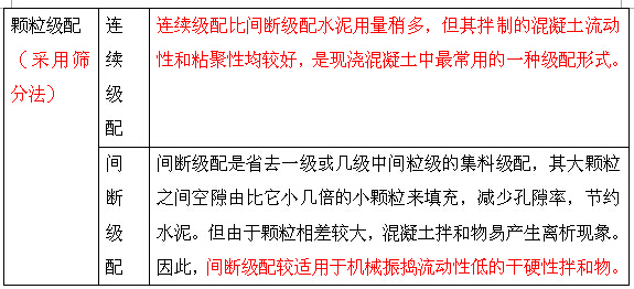 1) 連續級配:拌制的混凝土流動性和粘聚性均較好,是現澆混凝土中最常用的