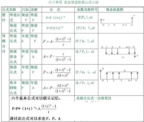 2、將六個資金等值換算公式以及對應的現金流量圖歸集于下表.