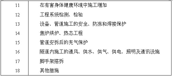 (2)當擬建工程中有設備、管道冬雨季施工,有易燃易爆、有害環(huán)境施工,或設備、管道焊接質(zhì)量要求較高措,施項目清單可列項“設備、管道施工的安全防凍和焊接保護”。