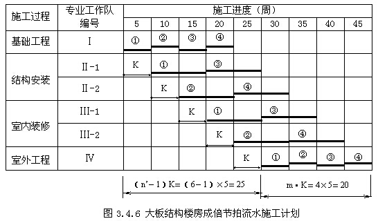 加快的成倍節拍流水施工工期T可按公式(3.4.6)計算: