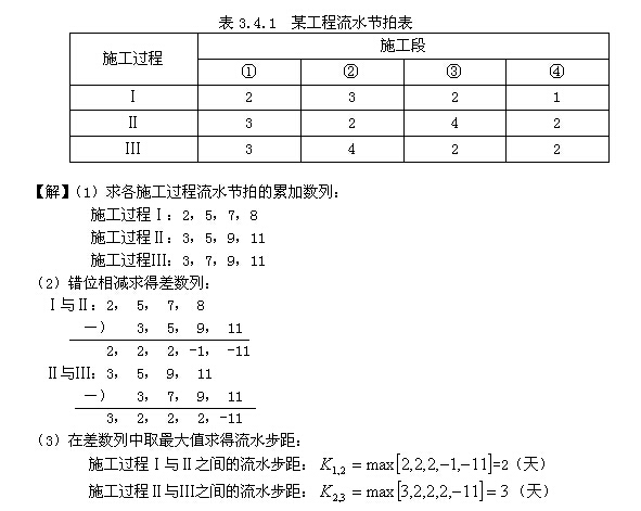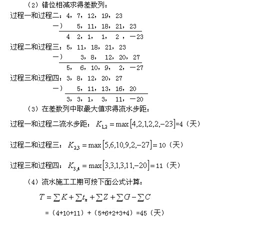 (3)在差數列中取最大值,即為這兩個相鄰施工過程的流水步距。