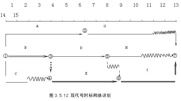 圖3.5.7所示的雙代號網絡計劃對應的時標網絡計劃如圖3.5.12所示。
