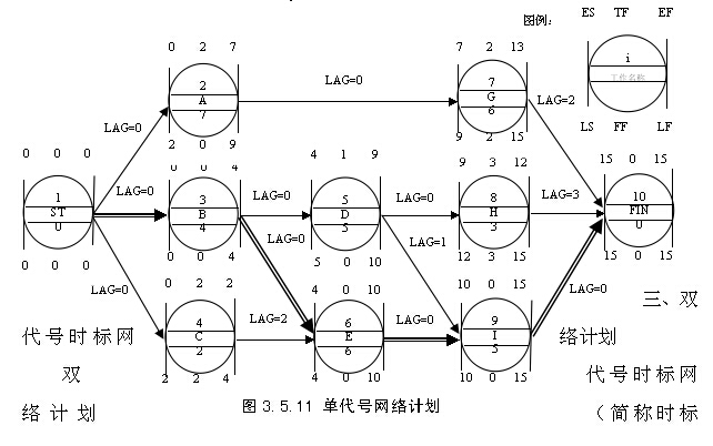 雙代號網絡計劃的時間參數既可以按工作計算,也可以按節點計算。
