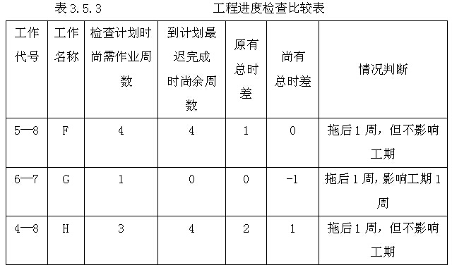 (2)根據原進度計劃計算檢查日期應該進行的工作從檢查日期到原計劃最遲完成時尚余時間;