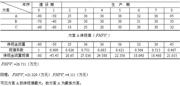 根據凈現值最大準則,選擇凈現值最大的方案為最佳投資方案;
