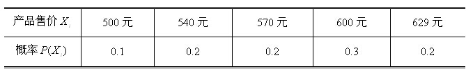某項目產品售價(隨機變量)的可能取值范圍及各取值的概率可用概率分布表表示。