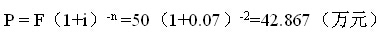 例:某企業兩年后擬從銀行取出50萬元,假定年利率為8%,現應存多少?