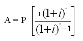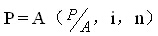 現投入一筆資金P,希望今后n年內將本利和在每年末以等額A的方式回收,問A?