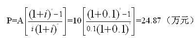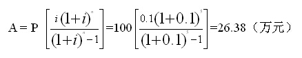 例:現投資100萬元,預期利率為10%,墳年回收,每年可回收多少?