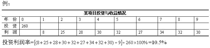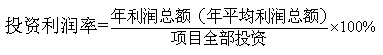 投資利潤率:是指項目在正常生產年份內,企業所獲得年利潤總額或年平均利潤總額與項目全部投資的比率: