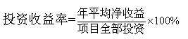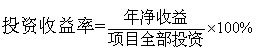 2)投資收益率(投資效果系數):項目達到設計能力后,其每年的凈收益與項目全部投資的比率。是考察項目單位投資贏利能力的指數。