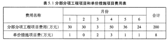 5、某建設項目,業主將其中一個單項工程通過工程量清單計價方式確定了中標單位,雙方簽訂了施工合同,工期為6個月。每月分部分項工程和單價措施項目費用見下圖: