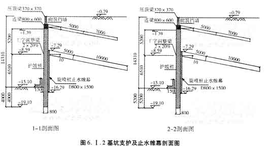 2.圖1―1、2―2剖面基底-15.10m,基坑支護深度-14.31m。