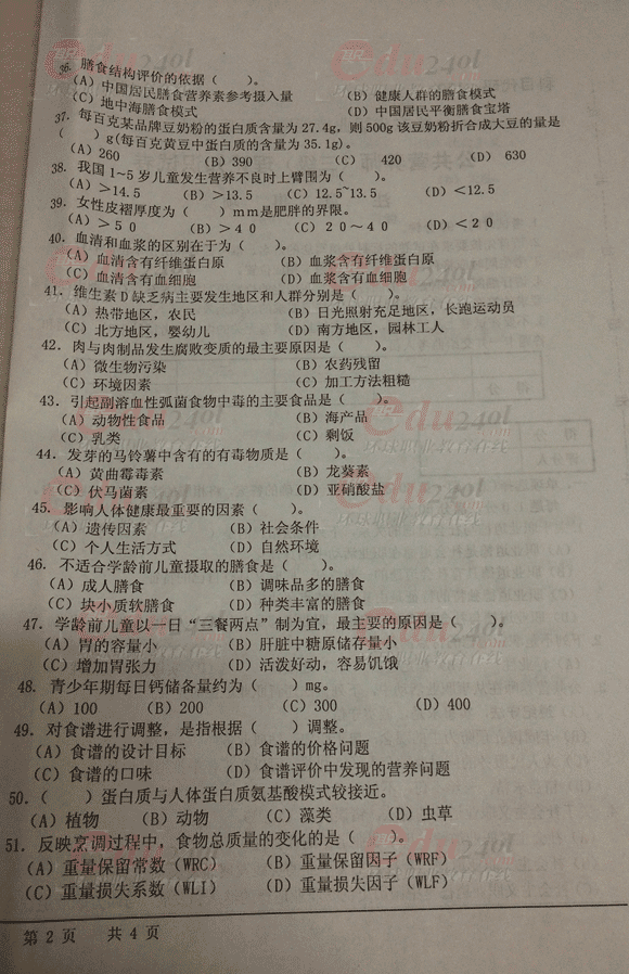 - 2024年6月29日三級公共營養師真題回顧(4)2024-07-26
