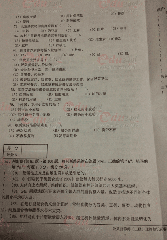 - 2024年6月29日三級公共營養師真題回顧(3)2024-07-25