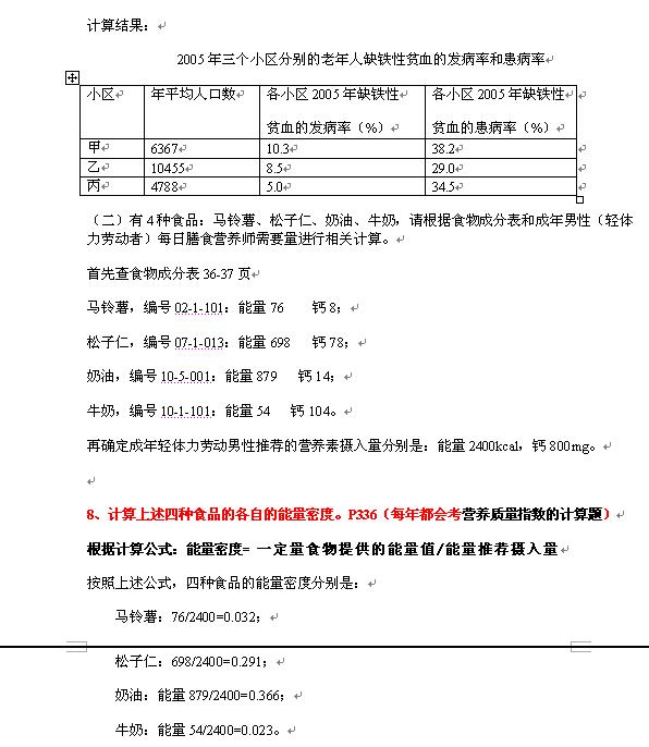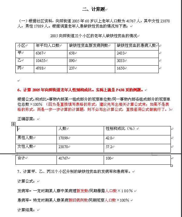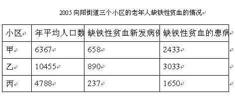 7、計算甲、乙、丙三個小區(qū)分別的缺鐵性貧血的發(fā)病率和患病率。