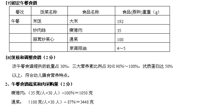 1、運用計算法編制小班的午餐食譜,要求脂肪供能比30%;