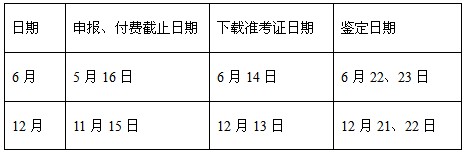 二、上述表式中“申報(bào)、付費(fèi)截止日期”指參加鑒定的單位或個(gè)人須在表中所列時(shí)間之前完成申報(bào)和付費(fèi)工作,“下載準(zhǔn)考證日期”指參加鑒定的單位或個(gè)人須自表中所列時(shí)間起完成下載、打印準(zhǔn)考證工作。