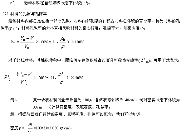 材料的密度是指材料在絕對密實(shí)狀態(tài)下單位體積的質(zhì)量,又稱質(zhì)量密度(ρ)。絕對密實(shí)狀態(tài)下的體積是指不包括孔隙在內(nèi)的體積。