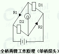 A-探頭底投影面積。全橋兩臂工作原理(單橋探頭)