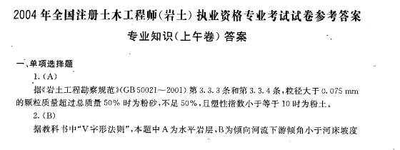 2004年注冊巖土工程師《專業(yè)知識》答案(上午卷)(1)