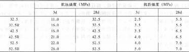 表10.3.3 普通硅酸鹽水泥各齡期的強度要求(GB 175―1999)