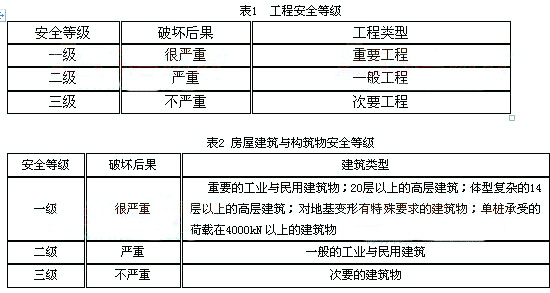工程的安全等級,是根據由于工程巖土體或結構失穩破壞,導致建筑物破壞而造成生命財產損失、社會影響及修復可能性等后果的嚴重性來劃分的。根據國家標準《建筑結構設計統一標準》GBJ68-84的規定,將工程結構劃分為三個安全等級,《規范》與之相應,也將工程安全等級劃分為三級。
