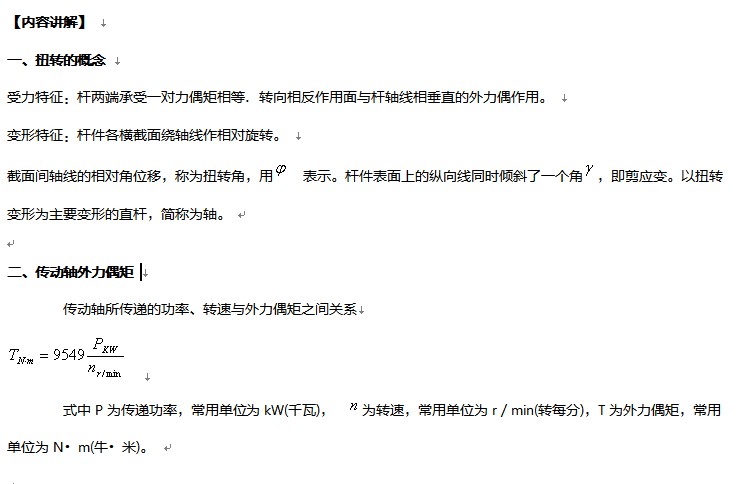 求扭矩和作扭矩圖的方法,橫截面上剪應(yīng)力分布規(guī)律和剪應(yīng)力計(jì)算,剪應(yīng)力強(qiáng)度條件。