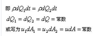 空隙,流體質(zhì)點也不可能穿過流管流進或流出,因此根據(jù)質(zhì)量守恒原理,經(jīng)dA1流進的流體質(zhì)量應等于經(jīng)dA2 流出的流體質(zhì)量,即