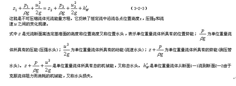 為將元流的能量方程推廣到總流,需利用漸變流的特點。前面流體運動的分類已提到,漸變流中各流線的曲率很小,而且流線間的夾角也很小。也就是說,漸變流中任一點的流速的大小和方向沿流線的變化很小。因此,可以不考慮慣性力,同一過流斷面上各點間的壓差由重力引起,斷面上壓強分布與靜壓強分布規律相同――直線分布即