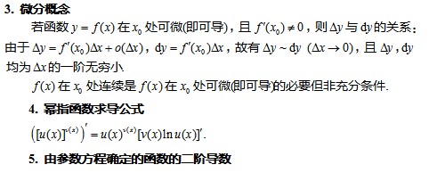 本節主要歸納總結求函數的導數和微分的主要方法。導數與微分雖然是兩個不同的概念,但它們之間也有關系: 。因此只要求出 的導數,由此關系式即可得到它的微分。所以,下面主要是總結求函數的導數的方法。
