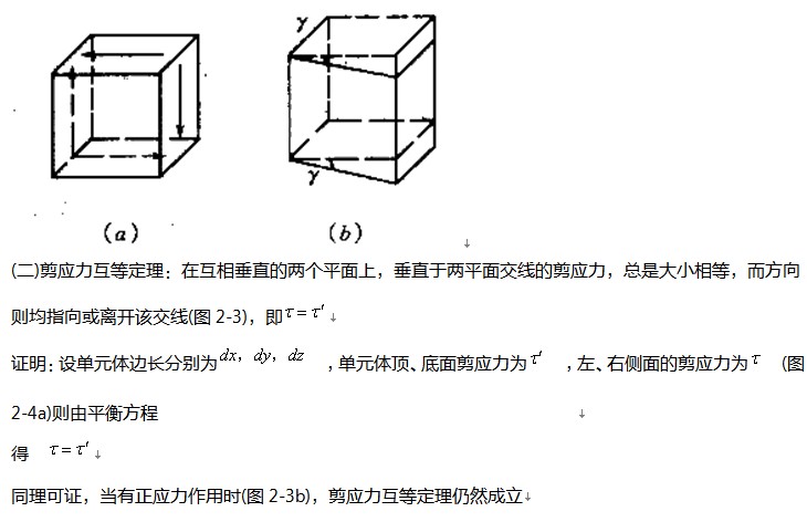 (一) 純剪切:若單元體上只有剪應力而無正應力作用,稱為純剪切。如圖2-3(a)所示,是單元體受力最基本、最簡單的形式之一。