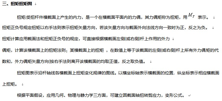求扭矩和作扭矩圖的方法,橫截面上剪應力分布規律和剪應力計算,剪應力強度條件。